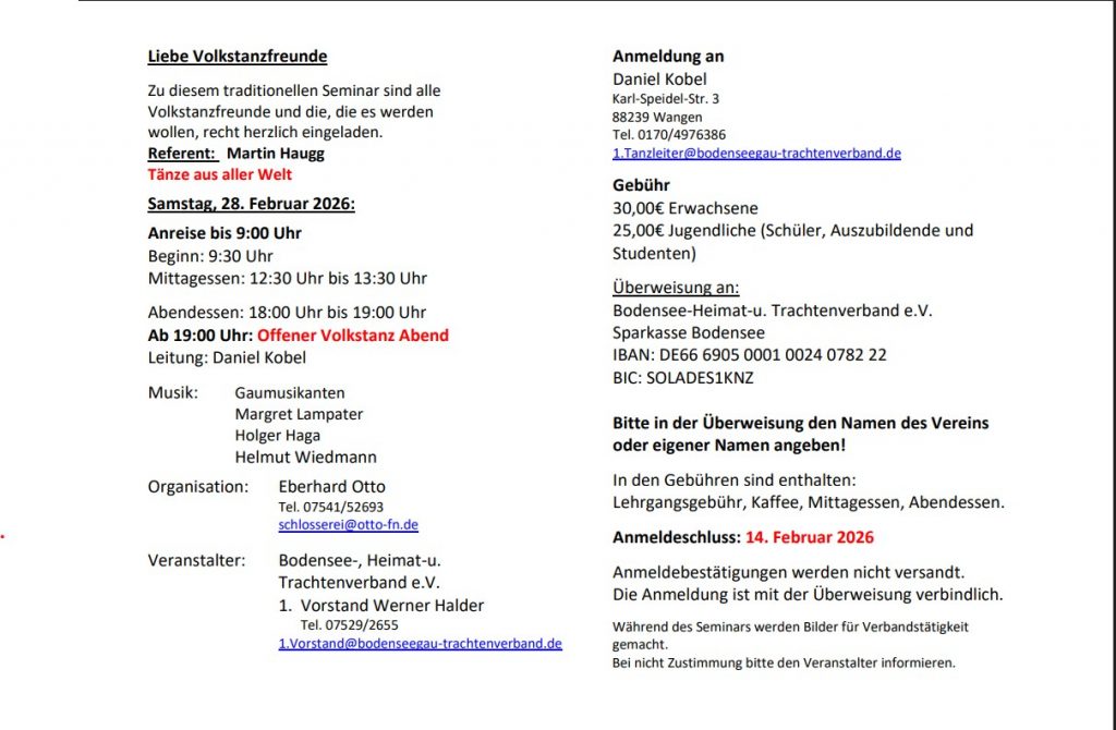 Als Delegierte des Landesverbandes und der Stadt Wangen i.A., nahmen 4 Personen des Bodensee Heimat- und Trachtenverbandes teil.